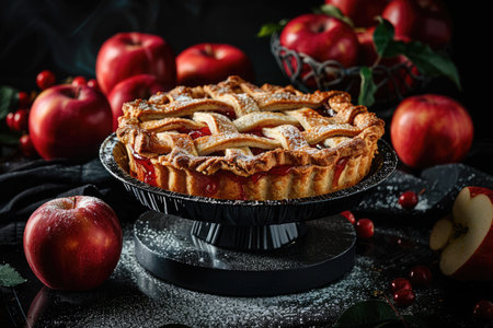 picture of apple pie, healthy dessert, baked food, sweet and sugary