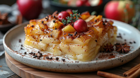 AI Generated. elegant caramelized apple tart with vanilla cream