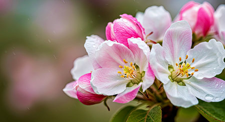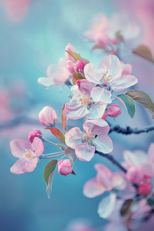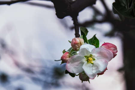 Apple tree flowers blossoming in spring. Gentle and beautiful spring image. Shallow depth of field