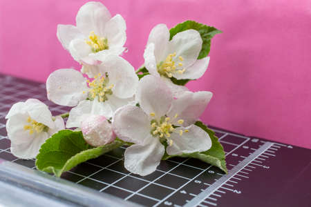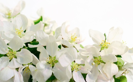 Flowers of Apple blossom. Background of white, beautiful and spring plants.