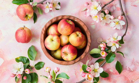 Vibrant Apple flowers plate nature. Harvest ripe. Generate Ai