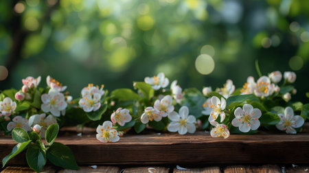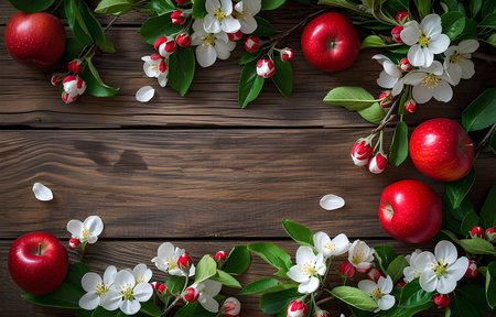 Rustic Apple wooden background. Cherry spring. Generate Ai