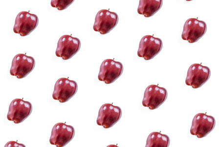 Top view of red crispy apples on white background. Healthy eating, agricultural industry concept