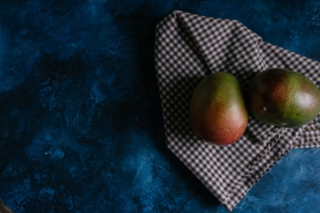 Two ripe mango organic product on the blue background