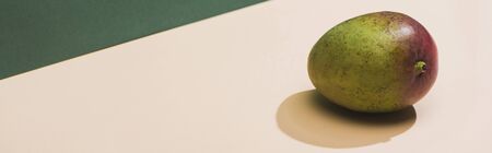 fresh mango on green and white background, panoramic shot
