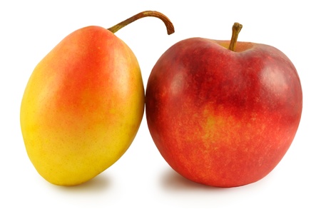 Yellow pear and red apple isolated on a white background