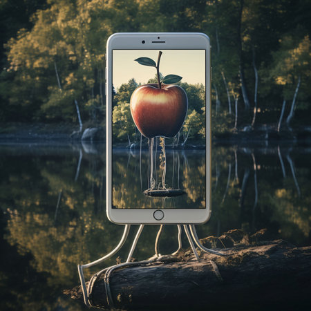 A surreal visual concept where vibrant green broccoli florets burst forth from a smartphone screen, symbolizing the fusion of nature and technology.