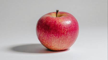 One apple lying naturally on a white background surface, soft shadowing, modern product photography feel