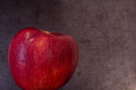 One red fresh apple on a black background. Healthy fruit and breakfast