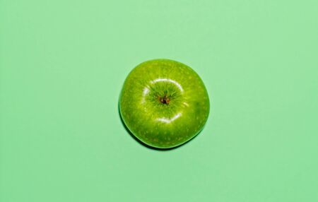 healthy plant-based food ingredients concept, green apple cut into thin equal slices stacked to maintain its original shape