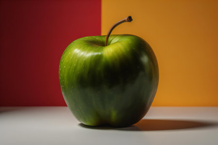 Green apple on a yellow and red background. The concept of healthy eating. generative ai