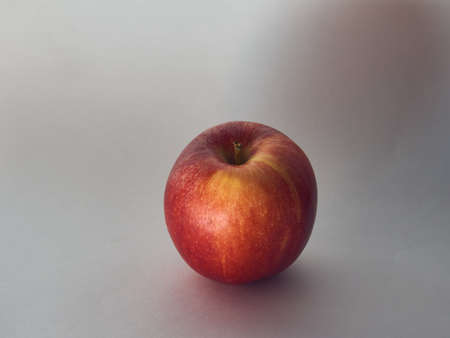 Artistic photo of one red apple on a white background table, gentle shadows and perfect symmetry