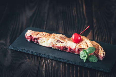 Apple strudel on a stone blackboard