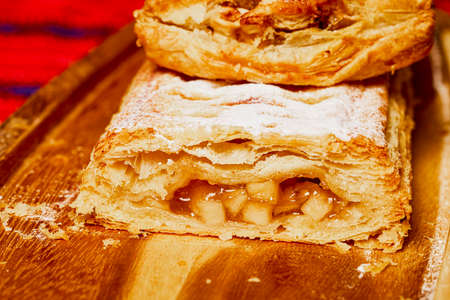 homemade baking puff pastry strudel on the table