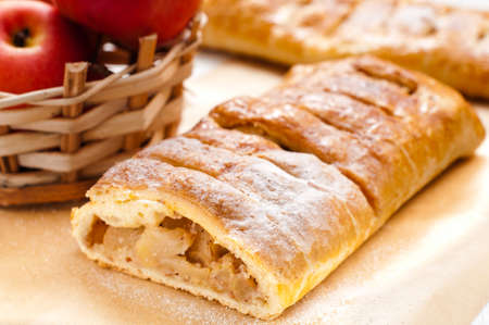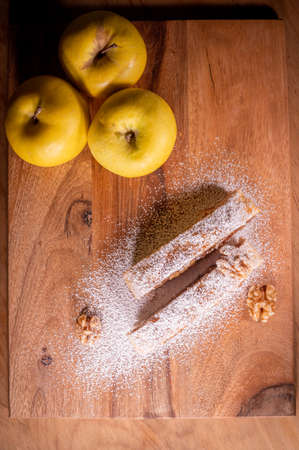 Homemade pastry strudel with apple and walnuts