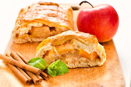 Freshly baked Apple and cinnamon strudel on baking paper