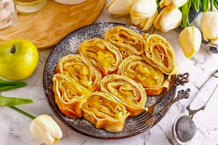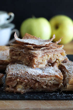 Apple pie of phyllo dough. Homemade sweet baked.