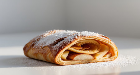AI Generated. Warm Apple Strudel Pastry Sprinkled With Powdered Sugar