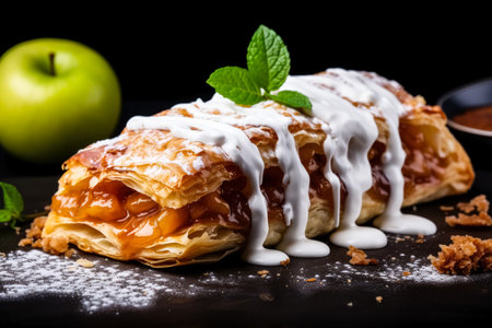 Capture the essence of Apple Strudel in a mouthwatering food photography shot