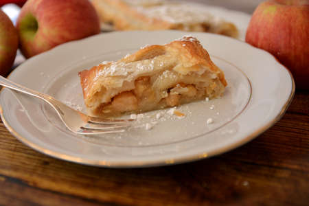 slice of apple strudel cake typical dessert from south tyrol and austria