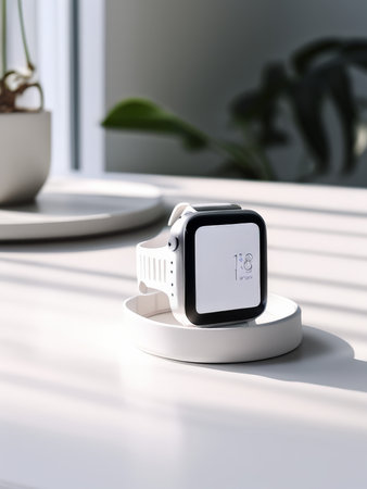 Sleek modern smartwatch showcase elegant tech accessory on white background with ample copy space