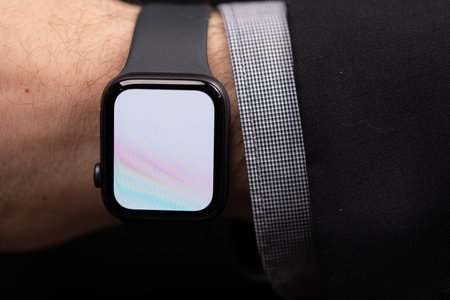 Close up of a modern smartwatch being worn on a person s wrist for a detailed view