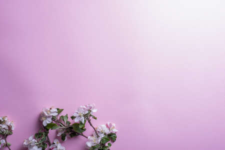 Apple tree flowers on pink background place for text