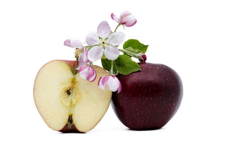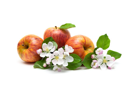 apple and apple blossom isolated on white background