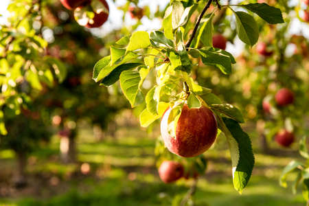 Apple orchard. The ripe apples in the orchard are ready to be harvested.