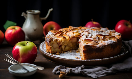 Rustic homemade apple pie, fresh baked indulgence generated by artificial intelligence