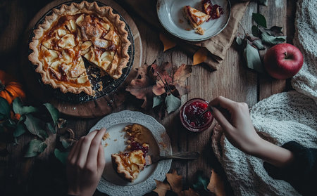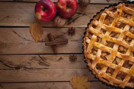 Apple tart pie for Thanksgiving celebration on wooden table