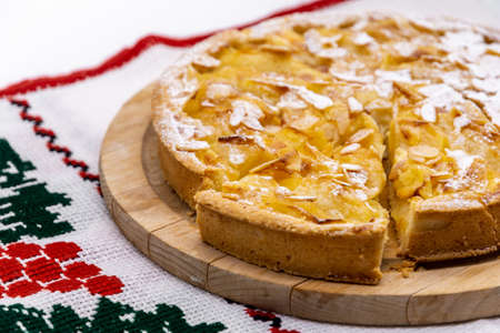 Apple pie with apples on a background