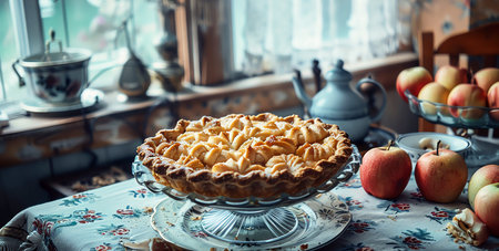 Photo of apple pie made in the kitchen