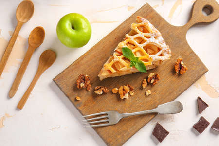 Delicious apple pie on a wooden board