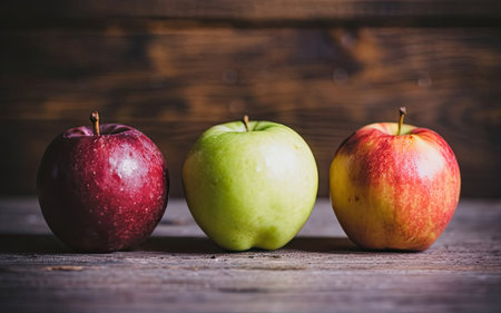 Fresh, Colorful Apples in a Row A Vibrant Display of Healthy Eating and Wellness Choices