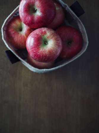 Realistic photo of a bunch of red apples. top view fruit scenery