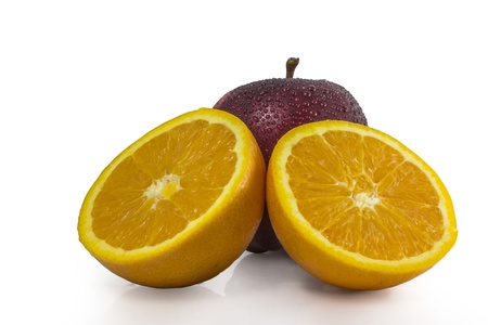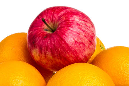 Apple and Ripe oranges on a white background
