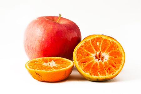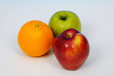 Food Related: Apples and Orange Isolated on a White Background