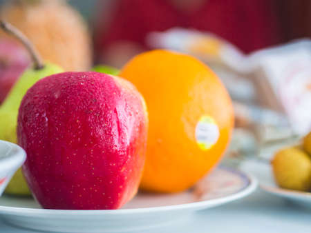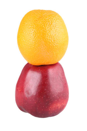Fresh red apple and orange
