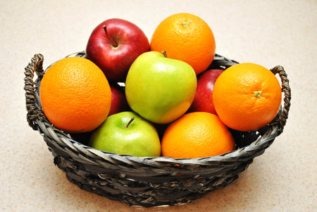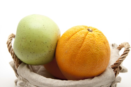 Apple and orange in the basket