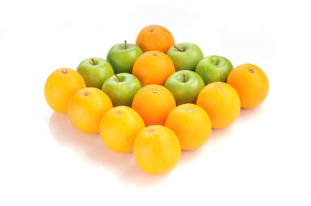 Fresh Fruit of orange and apple green in arrow shape isolated white background