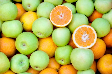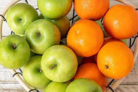 Tasty fresh oranges and green apples