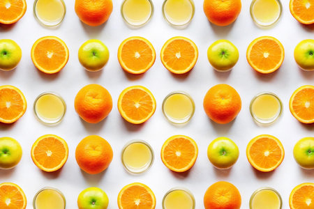 oranges and juicy apple isolated on white background