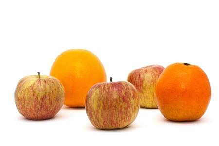 Apples and an oranges on a white background, apples and oranges