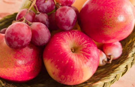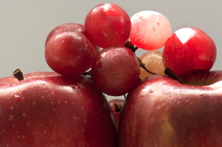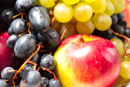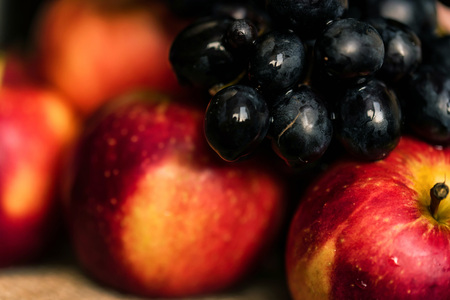 Fresh ripe red apples and grapes close