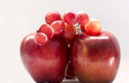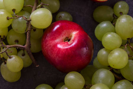 fresh healthy red ripe apple with green grapes