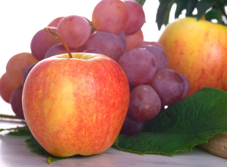 healthy fruits grapes, apple isolated on a white background
