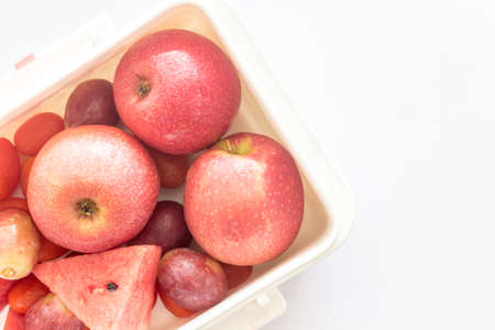 Fresh fruits on white background - healthy eating