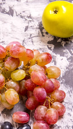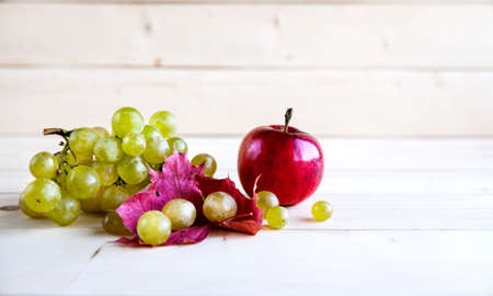 Fall fruits still life. Grapes and apples on a light background with room for copying