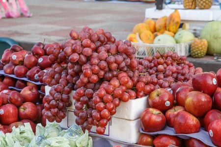Fruit street store with apples and grape